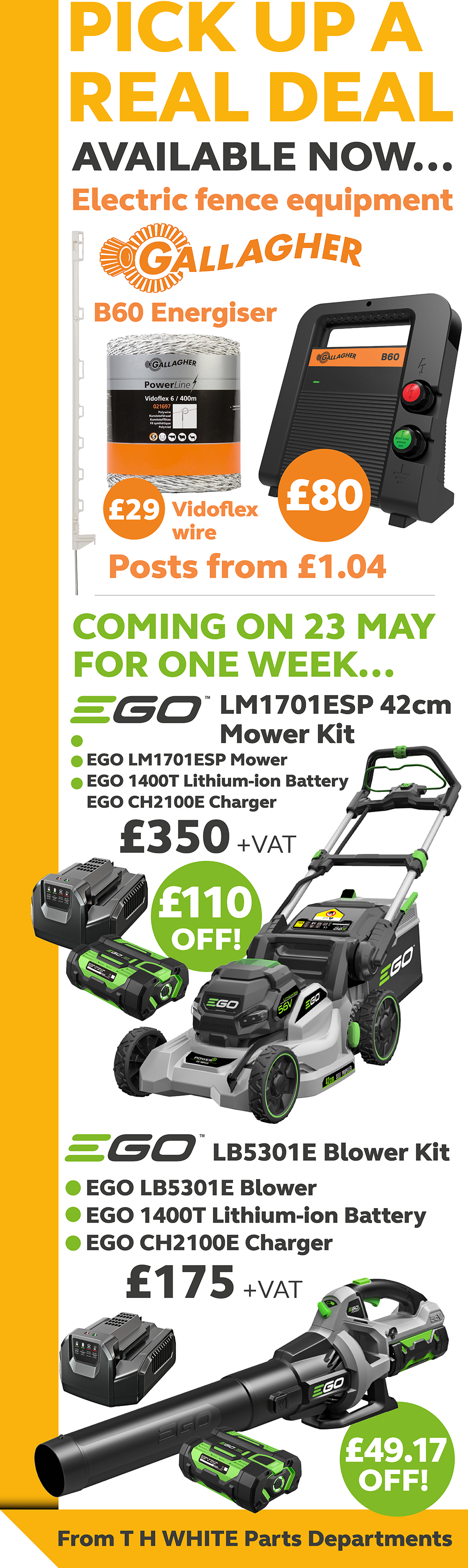 Great offers on mowers, blowers and electric fence kit by T H WHITE on May 11, 2022 Agriculture, Offers & Adverts Share this post: T H WHITEGreat offers on mowers, blowers and electric fence kit05.11.2022