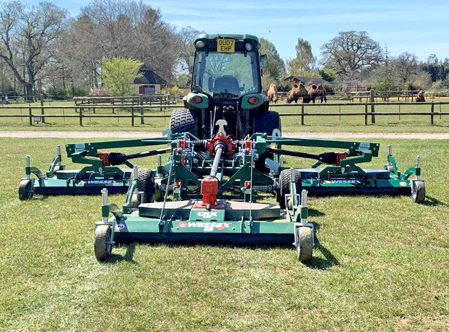 “Mike suggested trying the Wessex CRX-500 and I was simply amazed. The triple mowing decks cover a 5m width – wider than our our old mower – and it was fast too. The aspect that really appealed to me is that each mowing deck can be set up with four castoring wheels which make it easy to set a precise cutting height which was ideal for the short cut we wanted in the car park, so we ordered one!