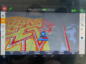 A view of New Holland’s PLM precision farming system – from on-screen inside the cab, to in-field outside the cab.