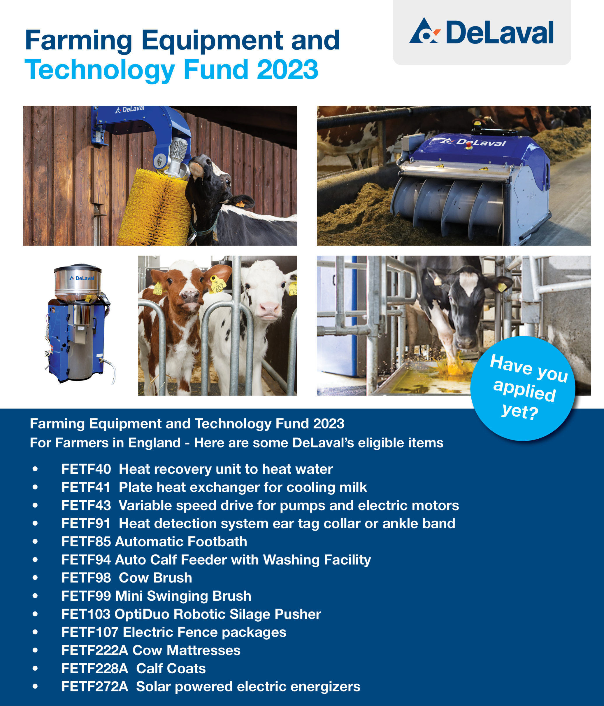 Here’s below a list of eligible items from Dairy specialist DeLaval, available to take away from dairy based branches of T H WHITE.