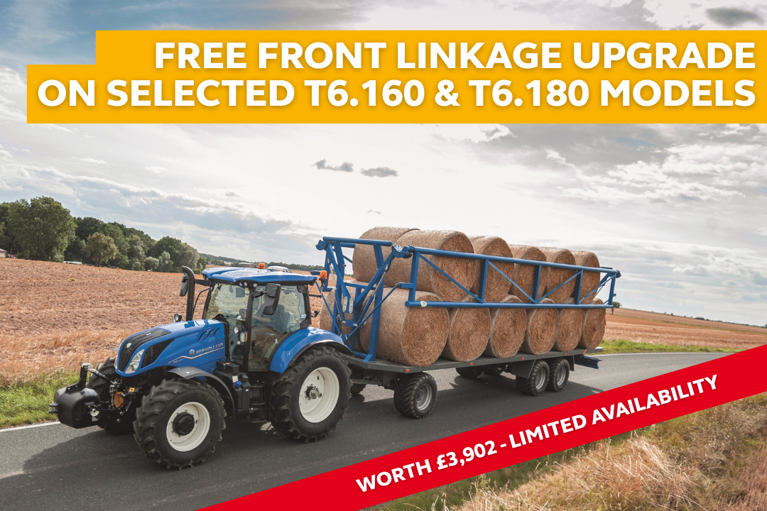 - Free front linkage upgrades (comprising integrated front linkage and joystick control) available on selected T6.160 & T6.180 Dynamic Command & Electro Command tractors.