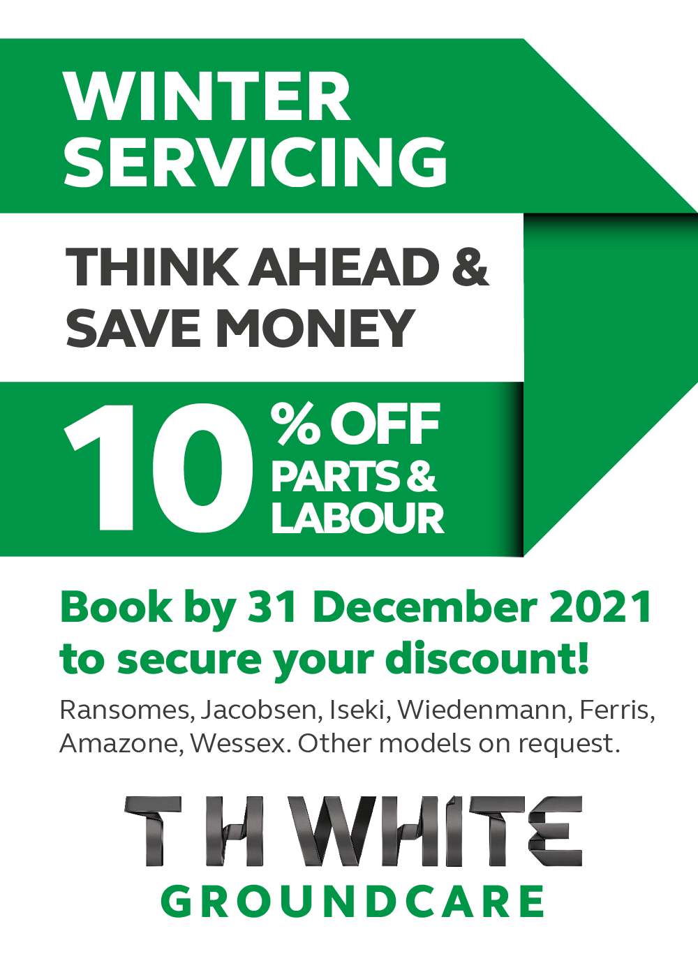 Save 10% on Groundcare equipment servicing this winter by T H WHITE on November 3, 2021 Groundcare Share this post: T H WHITESave 10% on Groundcare equipment servicing this winter11.03.2021