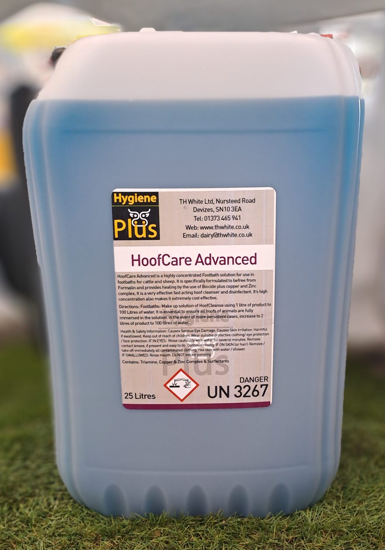 Hoofcare Advanced C2- HCA20 is a concentrated footbath solution free from formalin with healing biocides, copper and zinc. This fast acting cleanser will disinfect and heal. Available in a 25 litre drum from all T H WHITE dairy stores and from your dairy delivery van at £74.00 plus VAT.