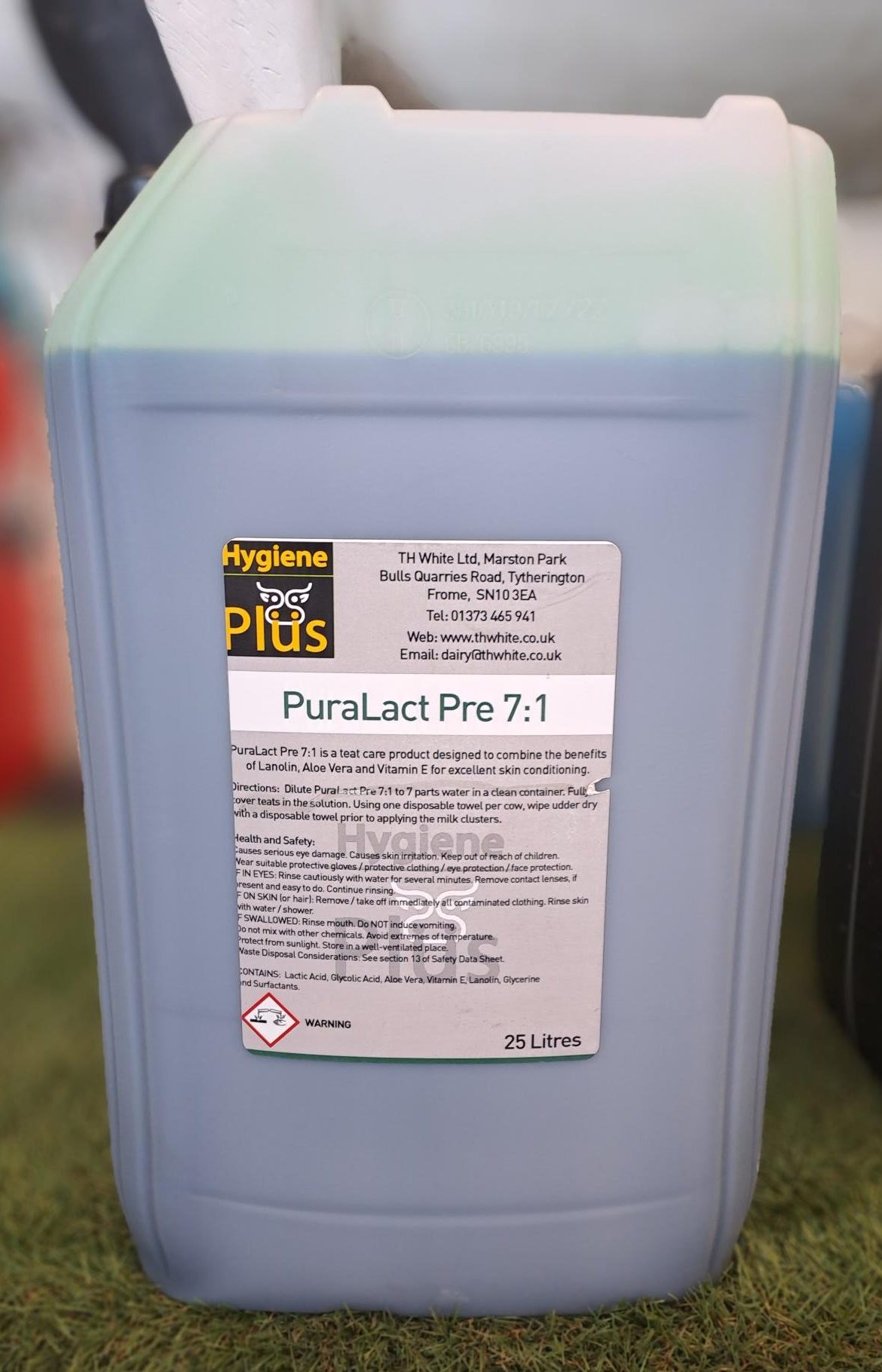 Puralact Teatcare C2-M-HAL76-21 combines the benefits of lanolin, aloe vera and vitamin E for an excellent, calming skin conditioner. Dilute 7:1 with water and simply coat teats in the solution. Available in a 25 litre drum from all T H WHITE dairy stores and from your dairy delivery van at £108.68 plus VAT.