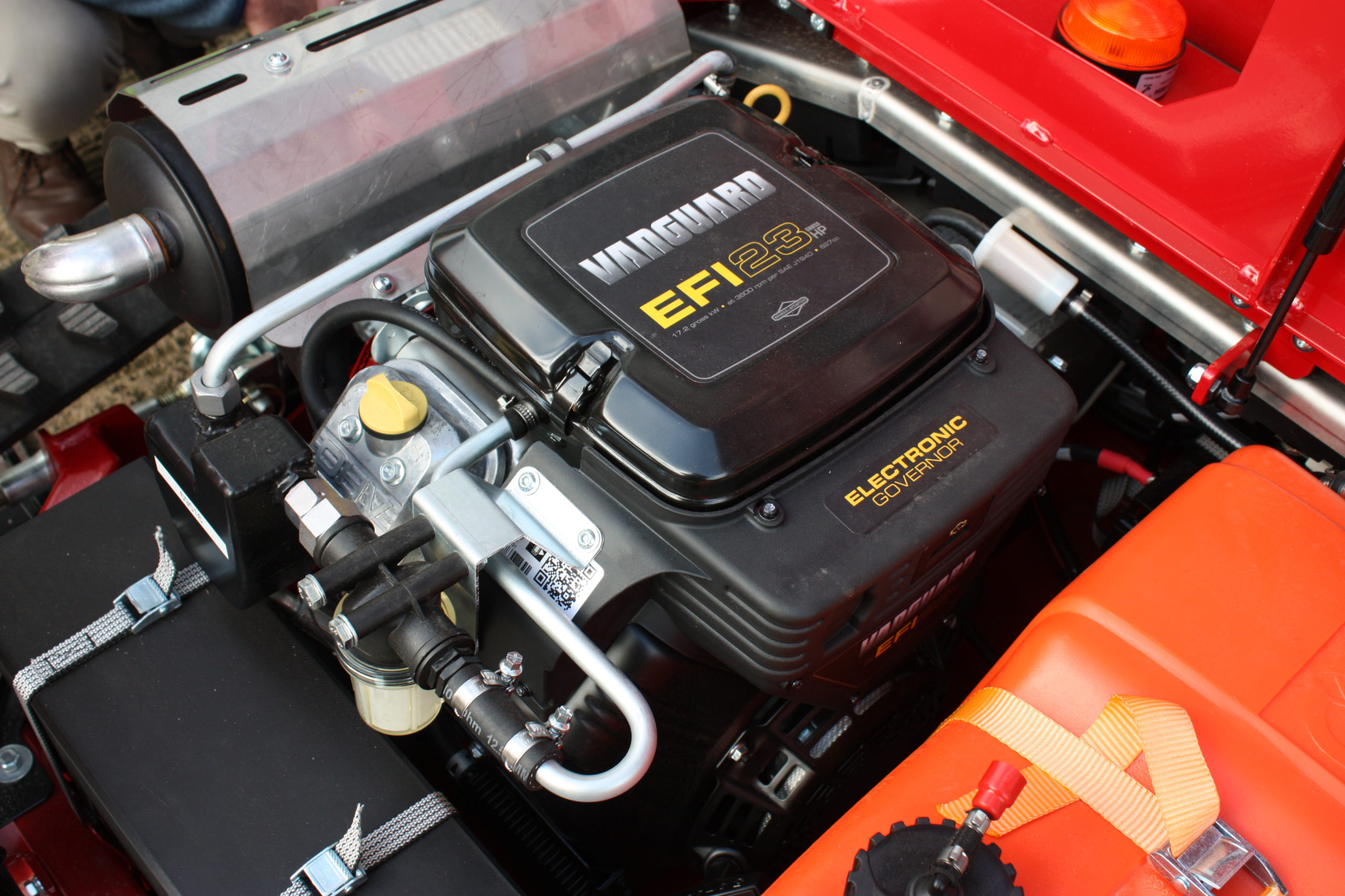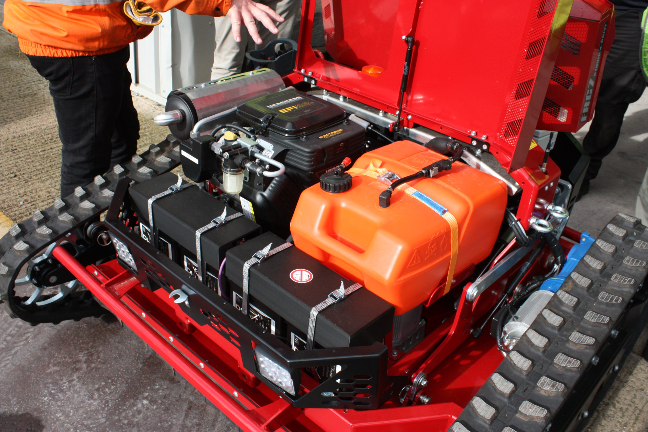 The FRC7 has a 48V DC drive system that provides power to the blades and to the tracks and can operate over a distance of up to 200m on battery power alone and without having to start the engine. Both the tracks and mower deck are electrically driven by a hybrid e-drive system that combines a combustion engine with a battery drive system, resulting in a highly effective powertrain, and load sensing ability which keeps the mower deck performing optimally and automatically adjusts the mowing speed when conditions get tougher.