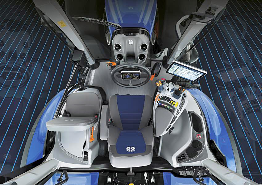 While retaining the familiar New Holland family appearance, the new generation T7 Heavy Duty tractors are a ‘clean sheet’ design, taking inspiration from all the things that customers asked for in their future tractor. The fresh approach is seen clearly in the brand-new Horizon Ultra cab which delivers real space, comfort and visibility, combined with an exceptional quality of finish. At just 66dBA it’s also the quietest tractor cab on the market.