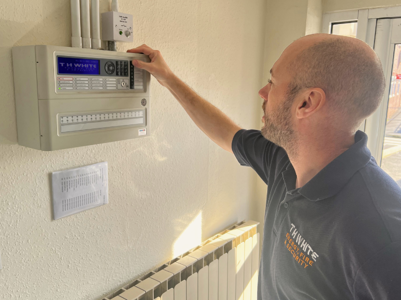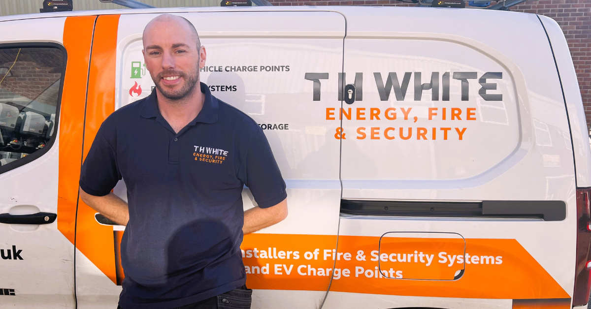My job role is in the Energy, Fire and Security division of T H WHITE. Everyday I visit a wide variety of sites – these consist of domestic homes, commercial premises, schools and anything that has 4 walls. I carry out services on security, fire, CCTV, emergency lights, door access and everything in between.