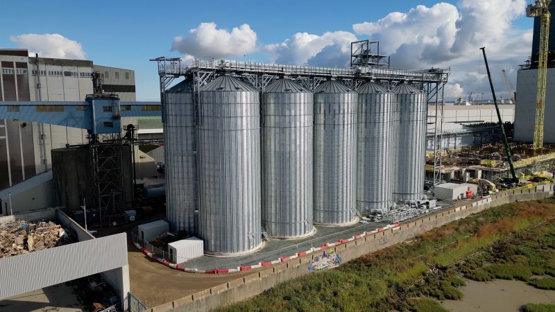Tilbury Grain Terminal regains 36,000 tonnes of storage capacity as construction work of 10 steel silos, associated flat store & connecting high-capacity handling system is completed.