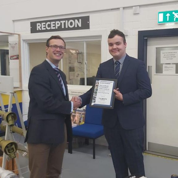 Elliott Moon Apprentice GraduationAt T H WHITE, we run a comprehensive and practical apprenticeship scheme for school leavers aged 16 and over. Opportunities exist within every division of the company and all incorporate a day of block release at college to gain the knowledge element of the qualification, with on-the-job practical experience gained in our workshops or on site. Apprenticeships are a great way to get industry experience and skills, in a hands-on working environment.